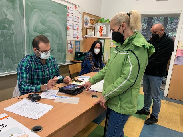 A voter's fingerprint is scanned in a polling station during North Macedonia's local elections. Skopje, 17 October 2021.