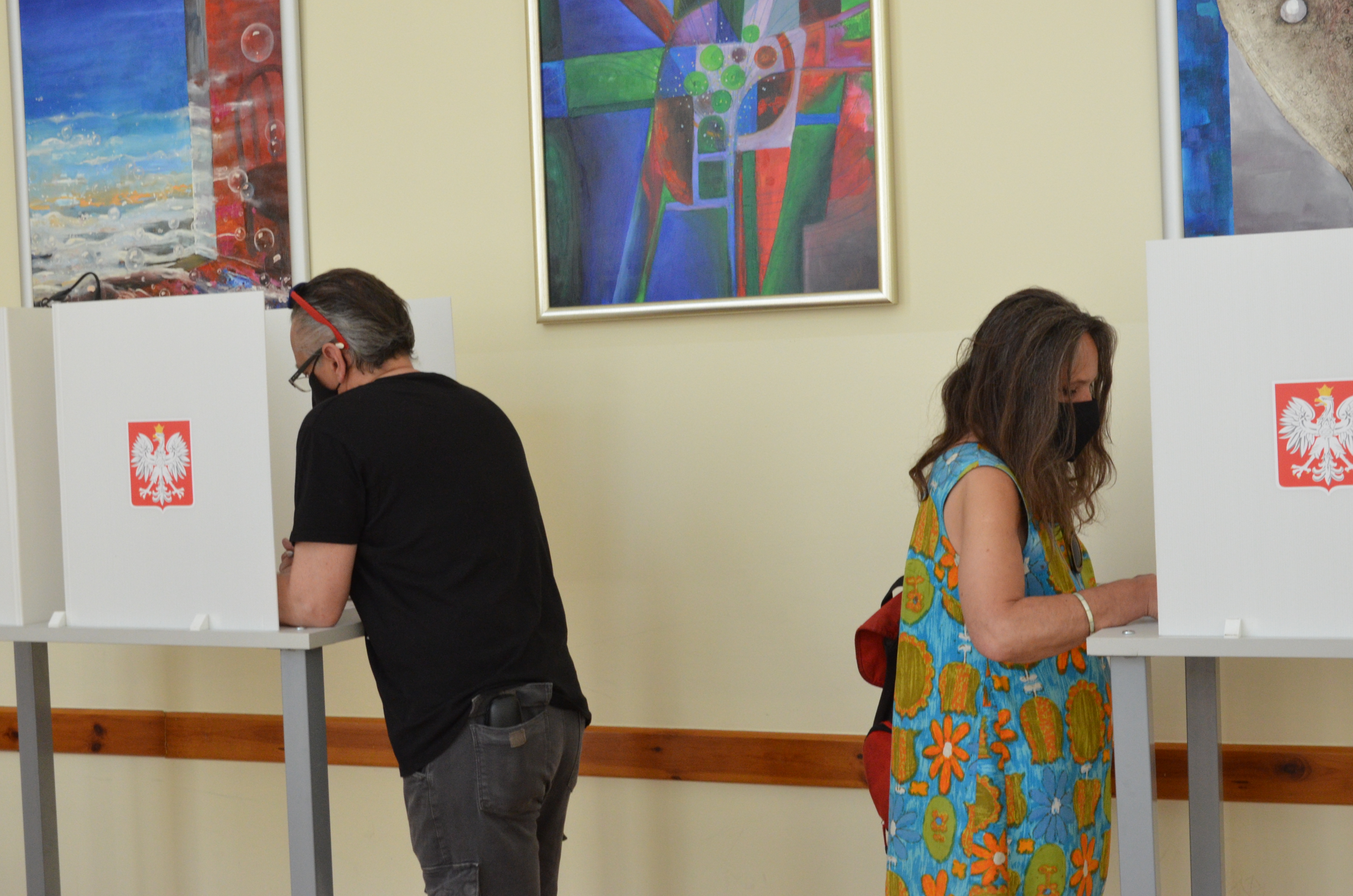 Voters fill out their ballots during the first round of Poland's presidential election. Warsaw, 28 June 2020.