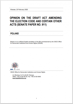 Poland: Opinion on the Draft Act Amending the Election Code and Certain Other Acts (Senate Paper No. 911)