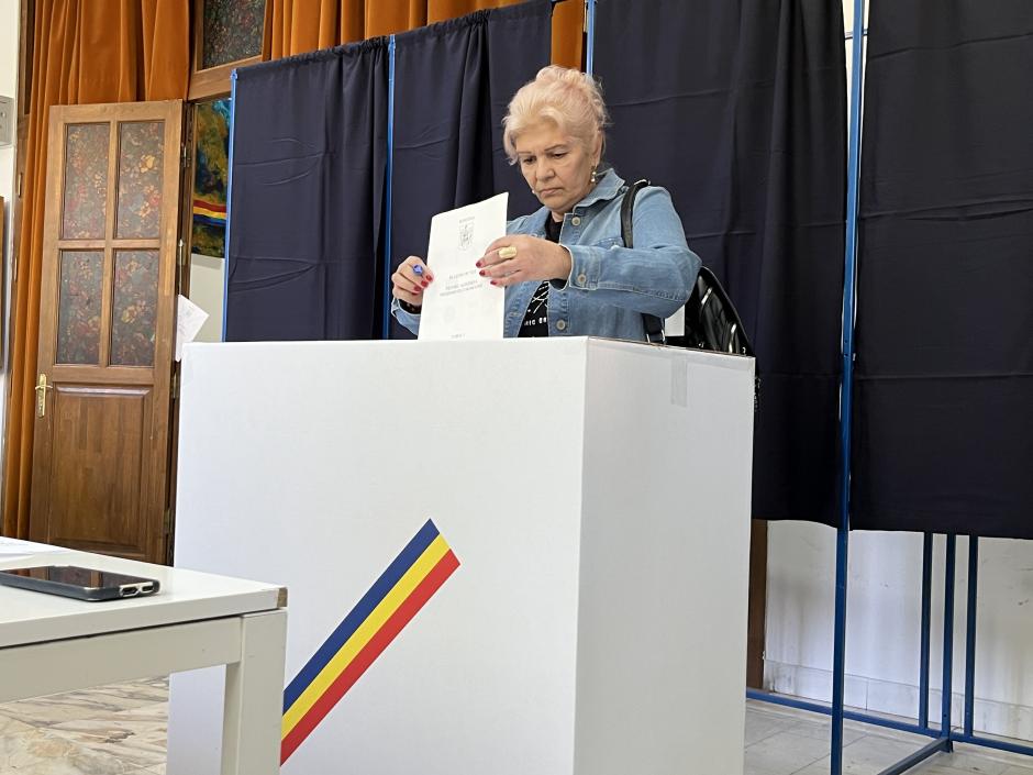 A voter casts her ballot during the repeat presidential election in Romania. Bucharest, 4 May 2025