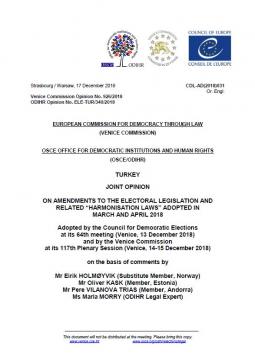 OSCE/ODIHR-Venice Commission Joint Opinion on Amendments to the Electoral Legislation and Related "Harmonisation Laws" Adopted in March and April 2018