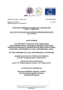 Joint Opinion on the Draft Checklist for Compliance with International Standards and Best Practices Preventing Misuse of Administrative Resources during Electoral Processes at Local and Regional Level of the Congress of Local and Regional Authorities