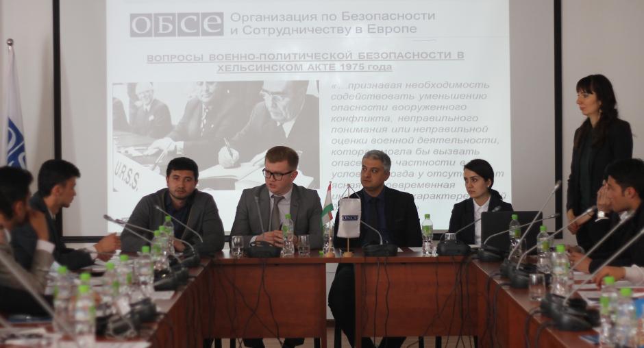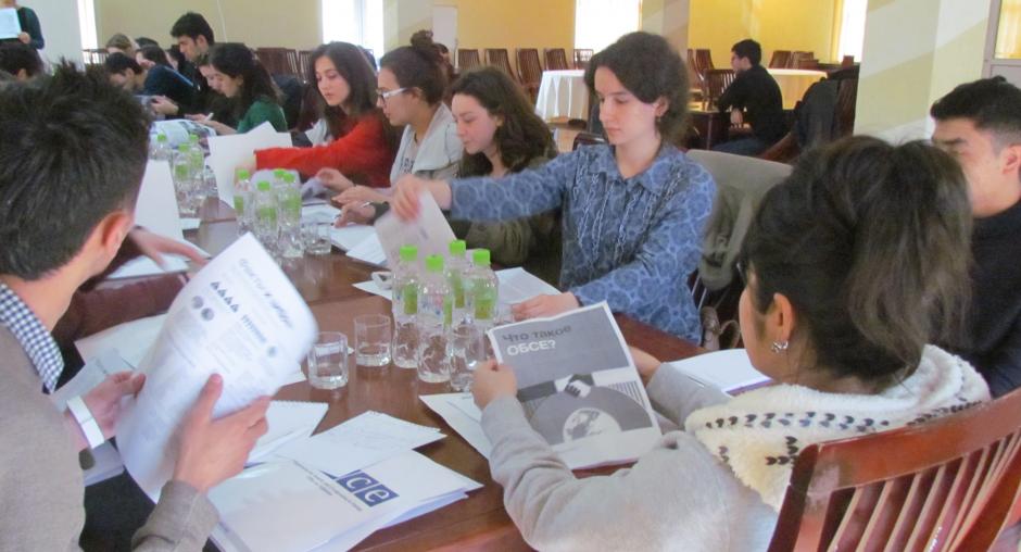 During the three-day training event, 32 participants learned about the OSCE, its structures, institutions, founding principles and its comprehensive approach to security. The students spent one day in Dushanbe where they met with various officials from the Office who lectured on the practicalities of the OSCE’s work on the ground. The event continued for two days in Romit (40km north-east of Dushanbe) where students simulated an OSCE Permanent Council plenary session.