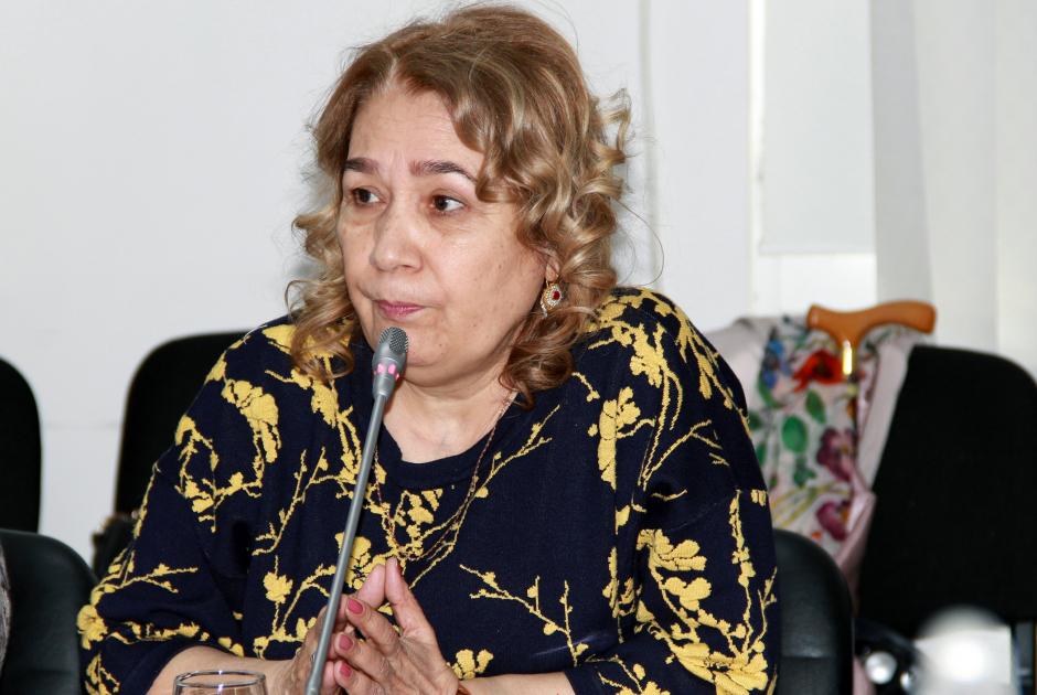 Maryam Davlatova, a gender relations expert, speaking at train-the-trainer course on role of parents in preventing violent extremism and radicalization leading to terrorism, Dushanbe, 11 April 2017.