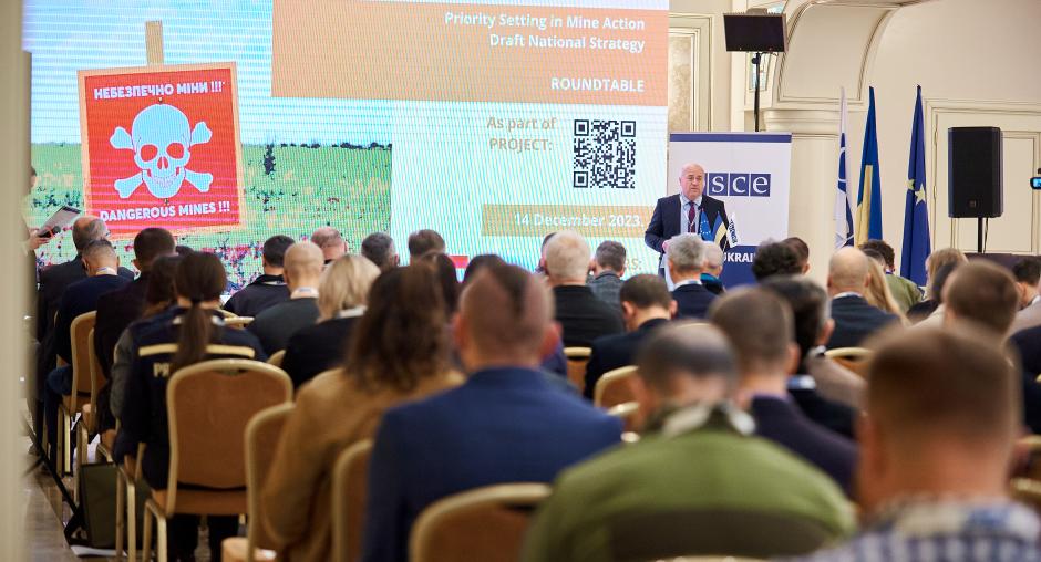 Within primary financial support from the European Union, the OSCE Secretariat Extra-Budgetary Support Programme for Ukraine (SPU) organised a roundtable “Priority Setting in Mine Action and Draft National Strategy” in Kyiv on 14 December 2023.