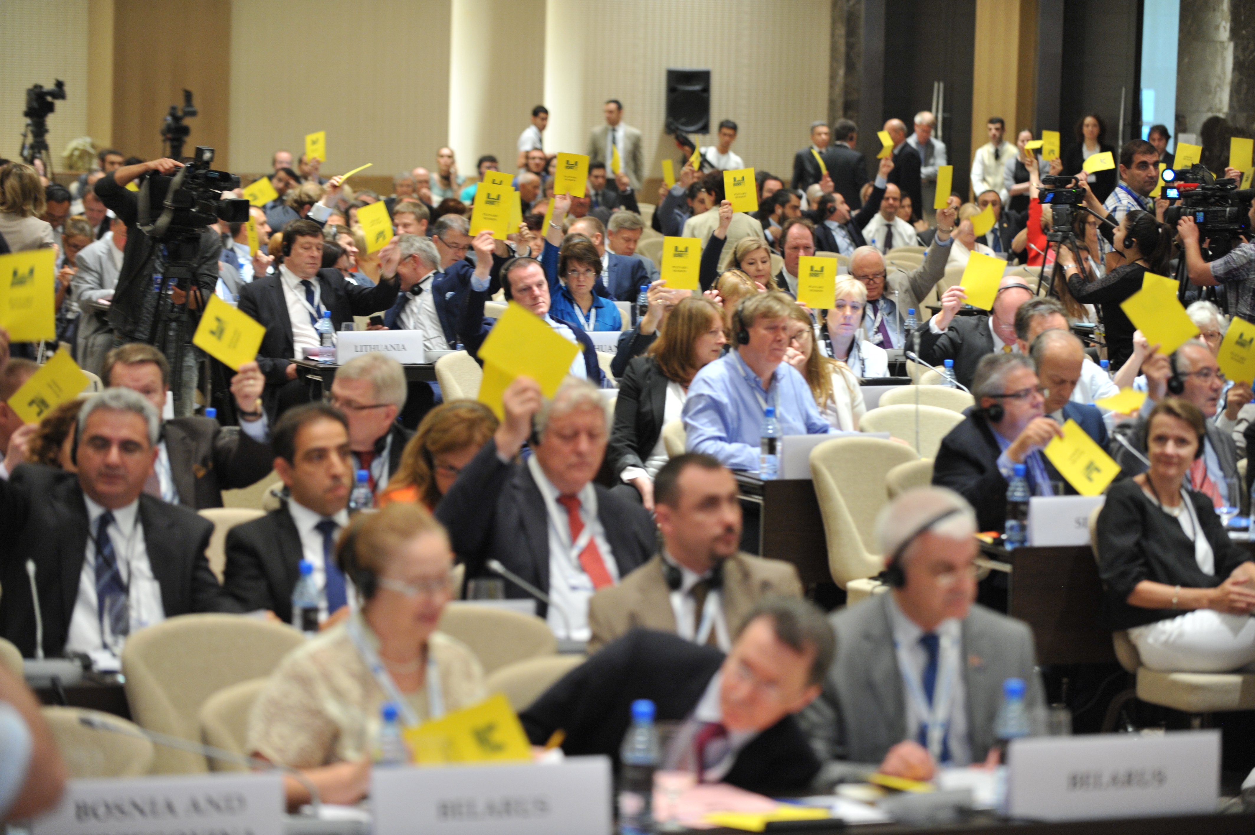 OSCE parliamentarians vote on the Baku Declaration on the final day of the 23rd OSCE PA Annual Session.