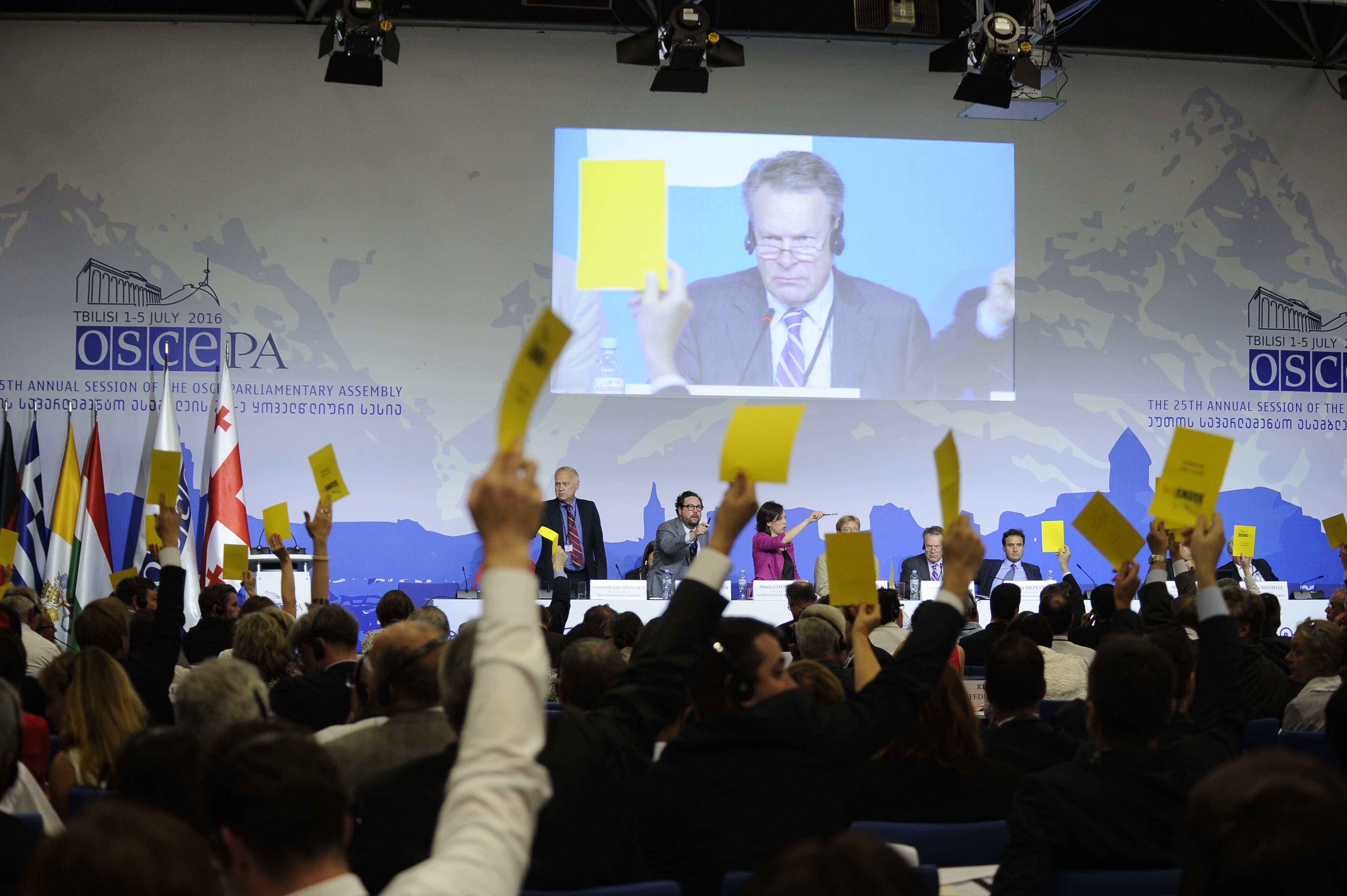 Voting during the OSCE Parliamentary Assembly’s Annual Session in Tbilisi, 4 July 2016.