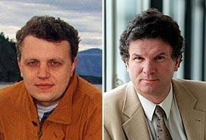 Recipients of the 2002 OSCE Prize for Journalism and Democracy: Pavel Sheremet of Belarus (left) and Friedrich Orter of Austria.