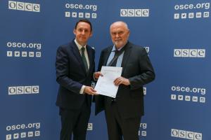 - H.E. Brian Flynn, Ambassador and Permanent Representative of Ireland to the OSCE, with the OSCE Secretary General Feridun H. Sinirlioğlu, Vienna, 3 September 2025.H.E. Brian Flynn, Ambassador and Permanent Representative of Ireland to the OSCE, with the OSCE Secretary General Feridun H. Sinirlioğlu, Vienna, 3 September 2025.Image