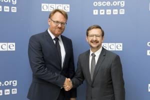 - H.E. René Dinesen (l), Head of Delegation of Denmark to the OSCE and Ambassador of Denmark to Austria with OSCE Secretary General Thomas Greminger, Vienna, 3 September 2018.H.E. René Dinesen (l), Head of Delegation of Denmark to the OSCE and Ambassador of Denmark to Austria with OSCE Secretary General Thomas Greminger, Vienna, 3 September 2018.Image
