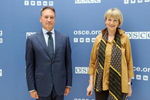 - H.E. Vesa Häkkinen, Ambassador and Permanent Representative of Finnland to the OSCE, with OSCE Secretary General Helga Maria Schmid, Vienna, 6 September 2021.H.E. Vesa Häkkinen, Ambassador and Permanent Representative of Finnland to the OSCE, with OSCE Secretary General Helga Maria Schmid, Vienna, 6 September 2021.Image