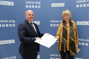 - H.E. Konstantinos Kollias (l), Ambassador and Permanent Representative of Greece to the OSCE, with OSCE Secretary General Helga Maria Schmid, Vienna, 17 May 2021.H.E. Konstantinos Kollias (l), Ambassador and Permanent Representative of Greece to the OSCE, with OSCE Secretary General Helga Maria Schmid, Vienna, 17 May 2021.Image