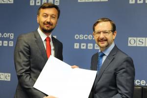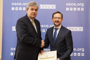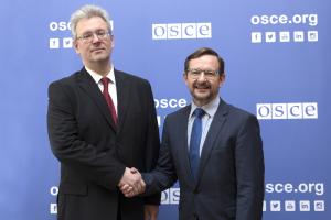 - H.E. Yevhenii Tsymbaliuk, Ambassador and Permanent Representative of Ukraine to the OSCE, with OSCE Secretary General Thomas Greminger, Vienna, 3 July 2019.H.E. Yevhenii Tsymbaliuk, Ambassador and Permanent Representative of Ukraine to the OSCE, with OSCE Secretary General Thomas Greminger, Vienna, 3 July 2019.Image