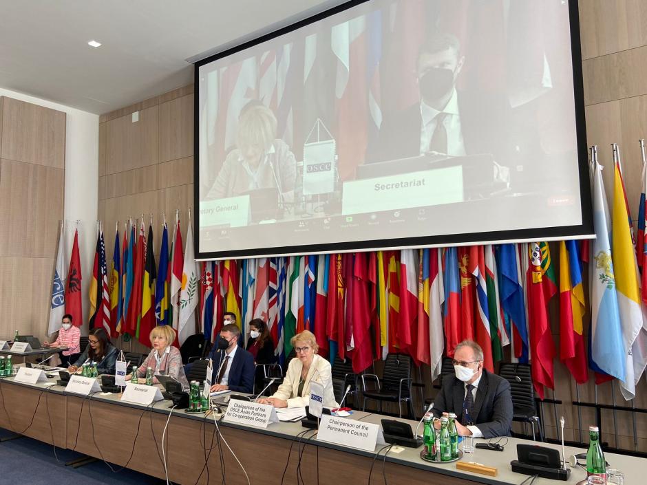 Speakers during the meeting on women’s empowerment in disaster risk reduction and emergency responses, with a particular focus on the consequences of the ongoing war against Ukraine, Vienna, 29 April 2022.
