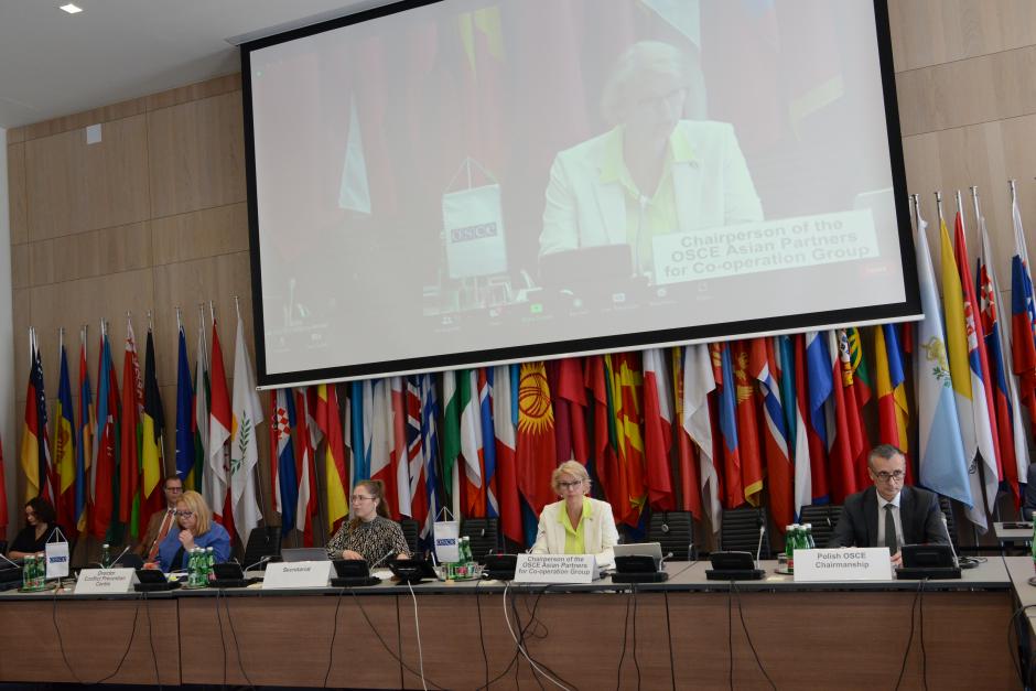 Ulrika Funered, Permanent Representative of Sweden to the OSCE and Chair of the OSCE Asian Partners for Co-operation Group, speaking at the Special OSCE Asian Partners meeting, Vienna, 3 June 2022.