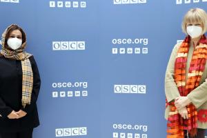 - H.E. Manizha Bakhtari (l), Ambassador of the Islamic Republic of Afghanistan, OSCE Partner for Co-operation with OSCE Secretary General Helga Maria Schmid, Vienna, 19 February 2021.H.E. Manizha Bakhtari (l), Ambassador of the Islamic Republic of Afghanistan, OSCE Partner for Co-operation with OSCE Secretary General Helga Maria Schmid, Vienna, 19 February 2021.Image