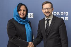 - H.E. Khojesta Fana Ebrahimkhel (l), Ambassador of the Islamic Republic of Afghanistan and Permanent Representative to the United Nations and other International and Regional Organizations in Vienna with OSCE Secretary General Thomas Greminger, Vienna, 22 November 2017.H.E. Khojesta Fana Ebrahimkhel (l), Ambassador of the Islamic Republic of Afghanistan and Permanent Representative to the United Nations and other International and Regional Organizations in Vienna with OSCE Secretary General Thomas Greminger, Vienna, 22 November 2017.Image