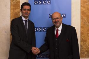 - H.E. Mohamed Mezghani (l), Ambassador and Permanent Representative of the Republic of Tunisia, with OSCE Secretary General Thomas Greminger, Vienna, 10 April 2018.H.E. Mohamed Mezghani (l), Ambassador and Permanent Representative of the Republic of Tunisia, with OSCE Secretary General Thomas Greminger, Vienna, 10 April 2018.Image