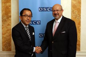 - H.E. Ambassador Kiyoshi Koinuma (l), Permanent Mission of Japan to the OSCE, with OSCE Secretary General Lamberto Zannier, Vienna, 19 October 2016.H.E. Ambassador Kiyoshi Koinuma (l), Permanent Mission of Japan to the OSCE, with OSCE Secretary General Lamberto Zannier, Vienna, 19 October 2016.Image