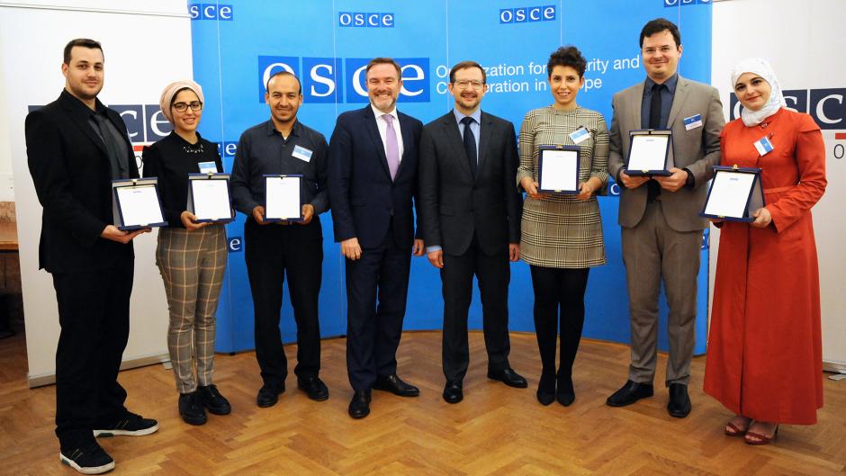 Young entrepreneurs from six Mediterranean countries receive the OSCE Award for green and social entrepreneurship, Vienna, 26 April 2018.