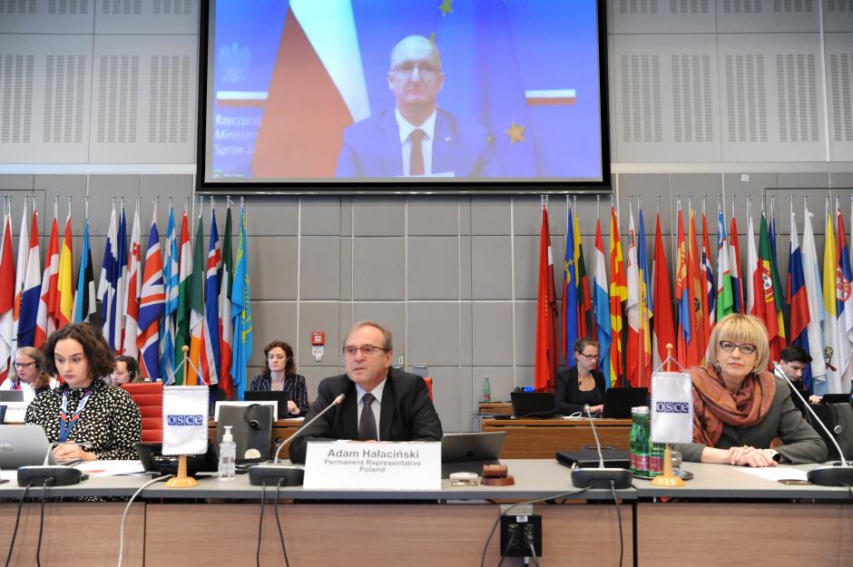 Piotr Wawrzyk, Deputy Foreign Minister of Poland, addressing at the OSCE 2021 Mediterranean Partners Conference, 12 October 2021, Vienna.