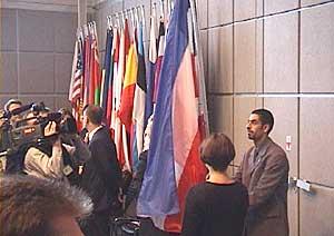 The flag of the Federal Republic of Yugoslavia is raised in the