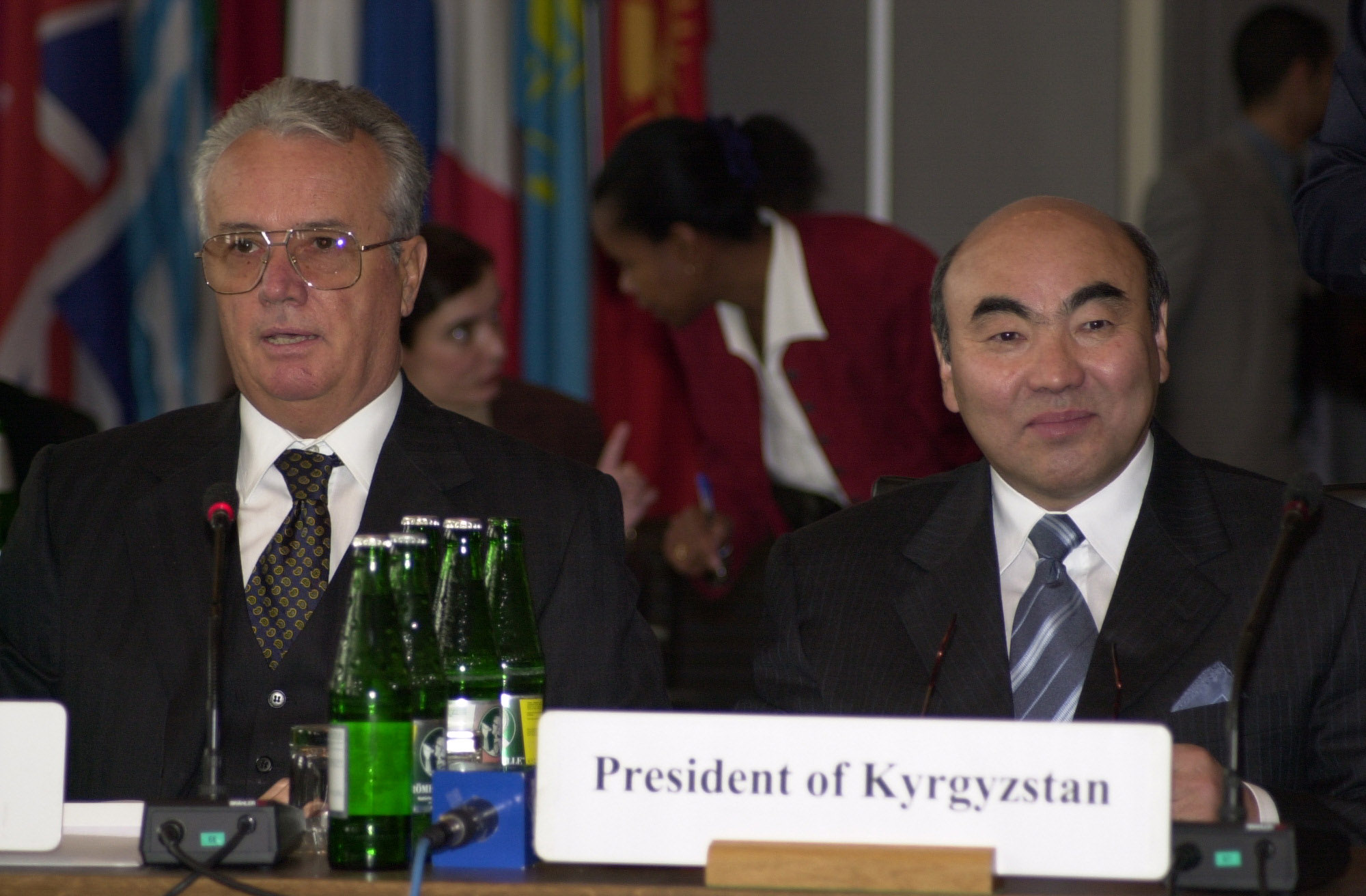 The President of the Kyrgyz Republic, Askar Akaev (right),