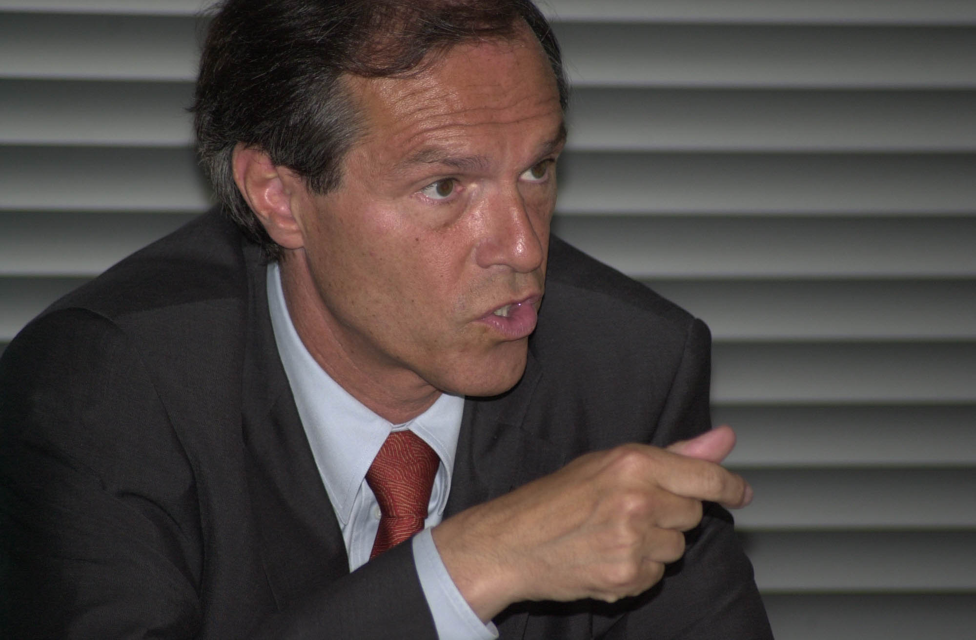Michael Steiner, Special Representative of the UN Secretary General, speaking to the media after his speech to the OSCE Permanent Council, 8 May 2003.
