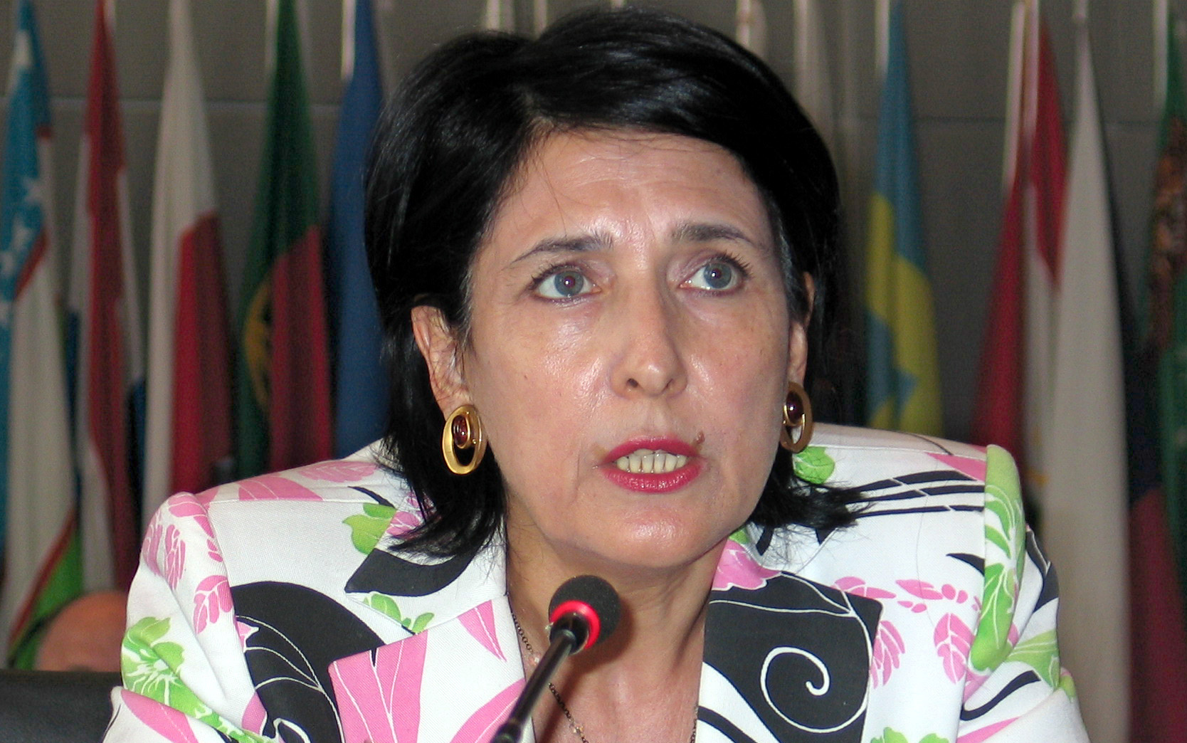 Salome Zourabichvili, Georgia's Foreign Minister, speaks at the OSCE Permanent Council meeting in Vienna on 18 August 2004.