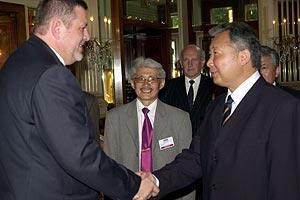 OSCE Secretary General Jan Kubis meets Kyrgyzstan's Acting President Kurmanbek Bakiev in Vienna, 30 May 2005.