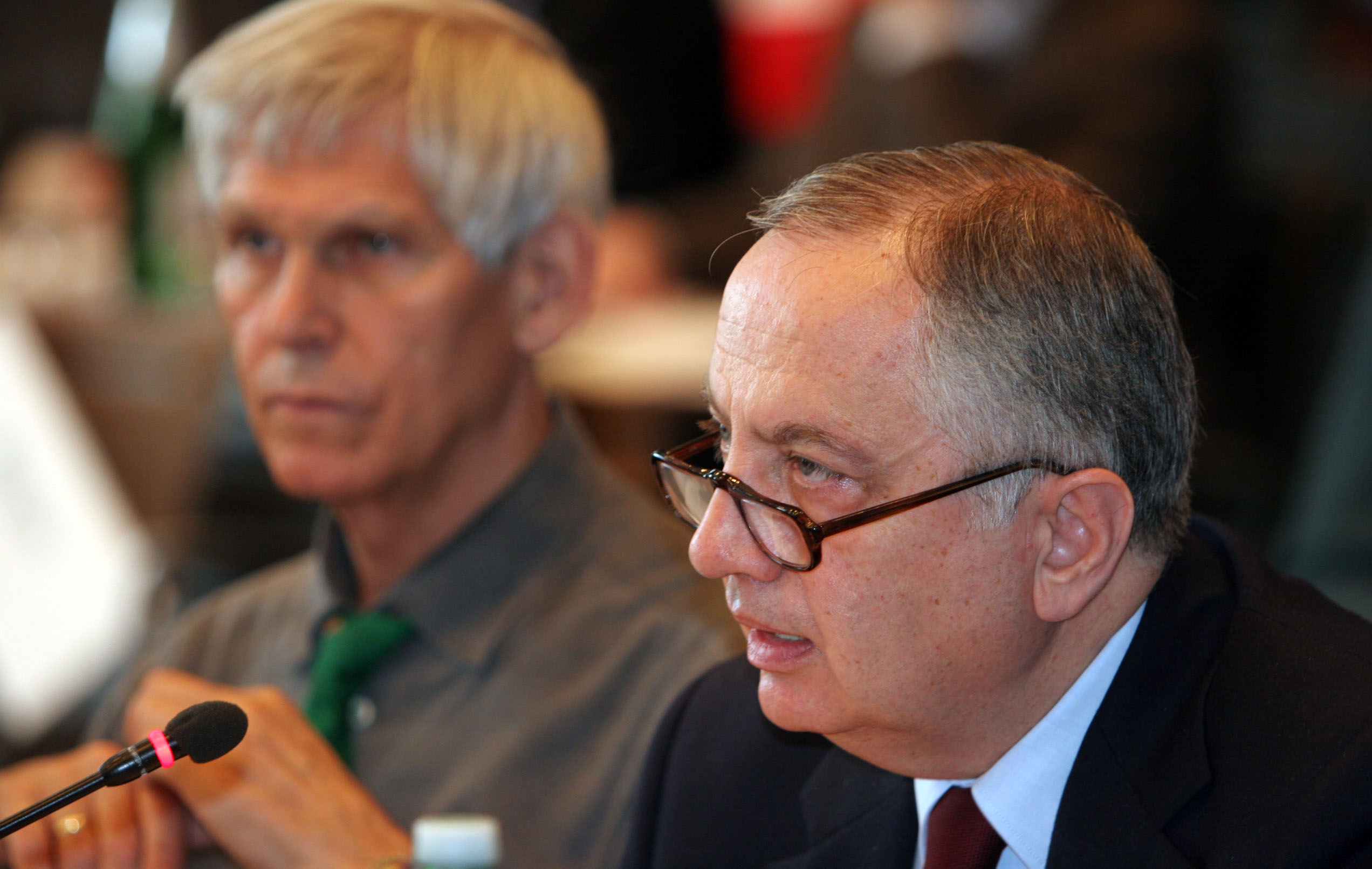 Ambassador Omur Orhun, the OSCE Chairman's Personal Representative on combating intolerance and discrimination against Muslims in Vienna 18 May 2006. On the left is Gert Weisskirchen, the OSCE Chairman's Personal Representative on Combating anti-Semitism.