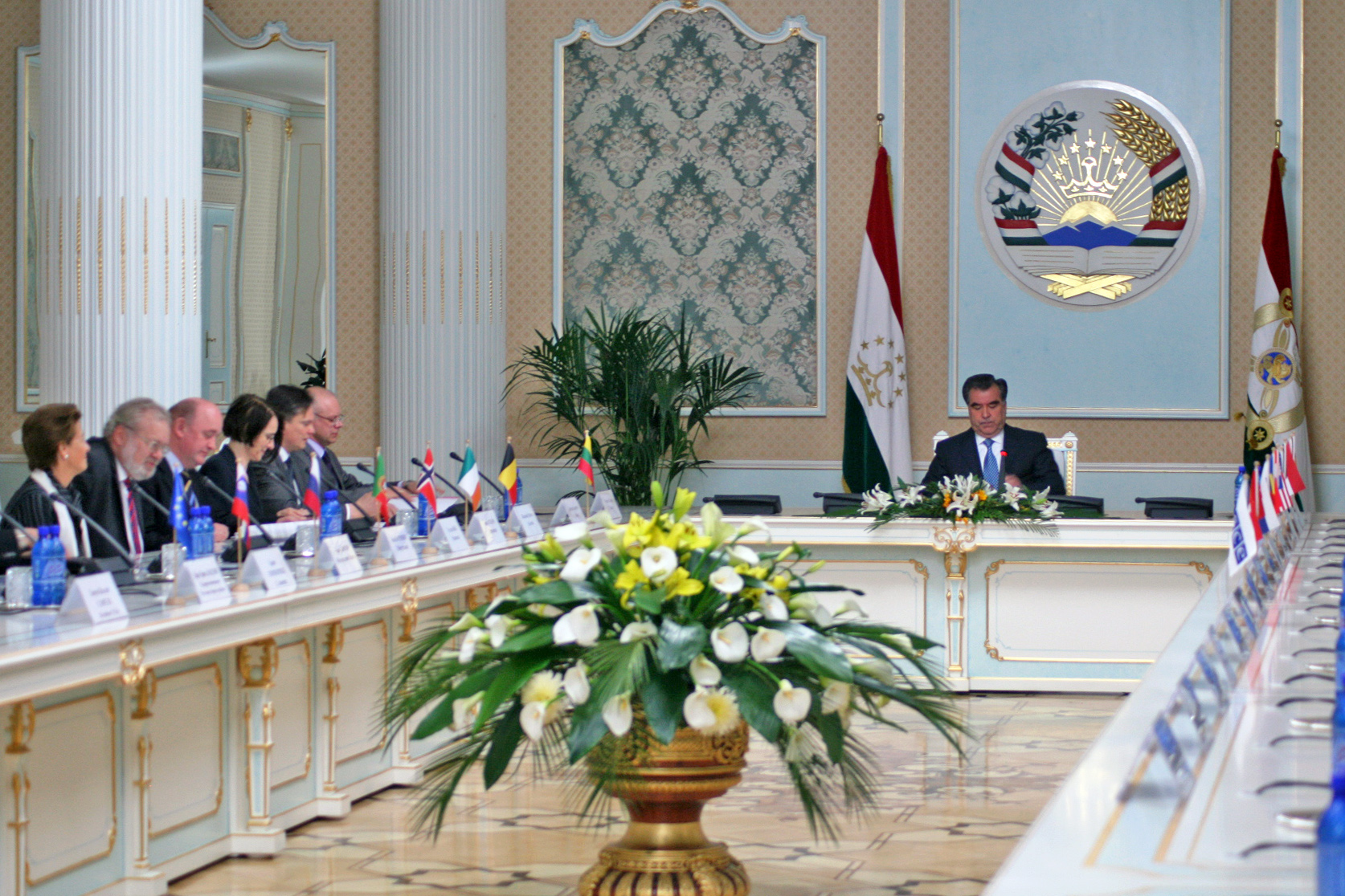 The President of Tajikistan Emomali Rakhmon, receives a group of Vienna-based OSCE Ambassadors, Dushanbe, 4 April 2011.