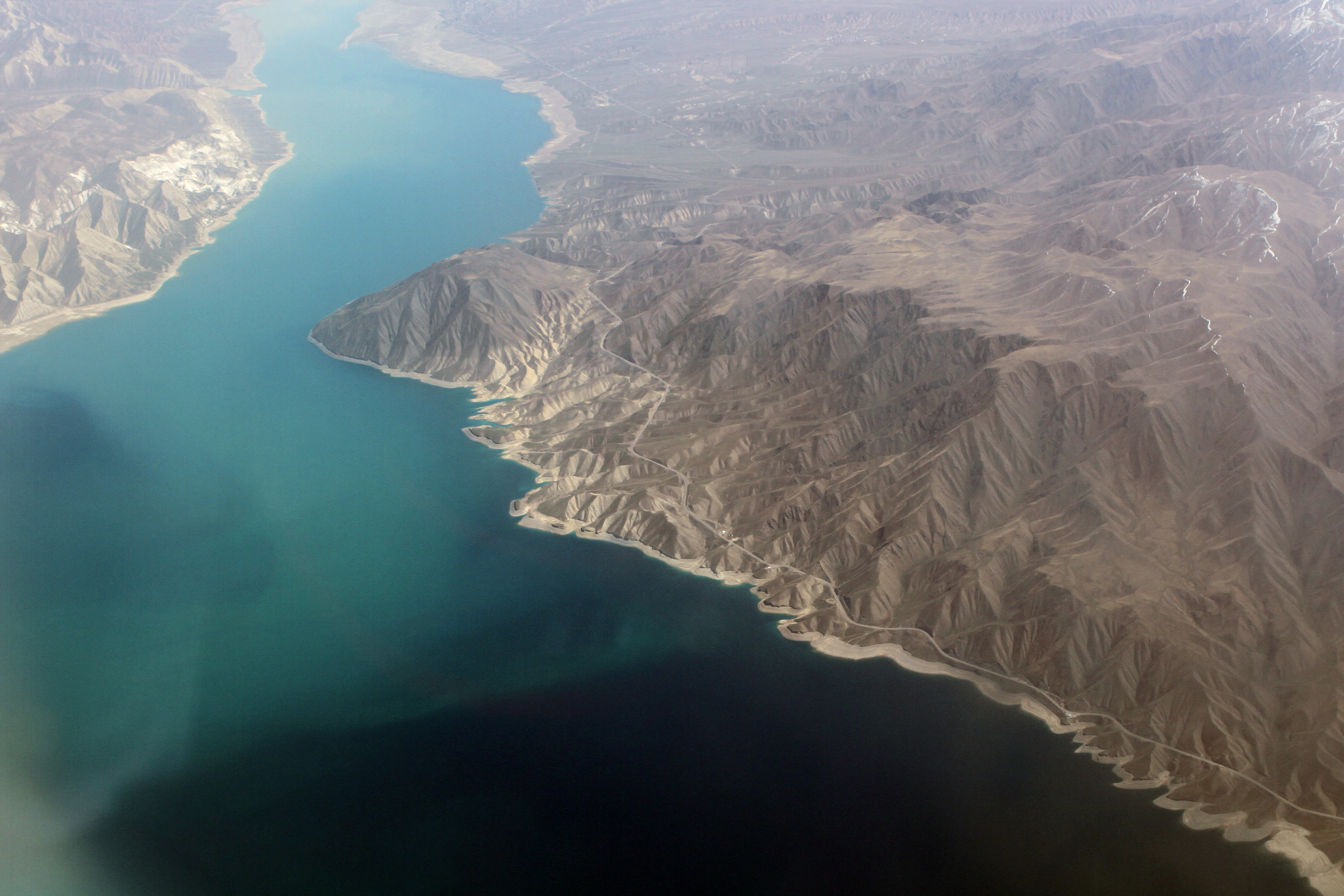 Toktogul Reservoir, Kyrgyzstan, as seen from a flight between Dushanbe and Bishkek, 7 April 2011.