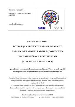 OPINIA KOŃCOWA OBWE/ODIHR DOTYCZĄCA PROJEKTU USTAWY O ZMIANIE USTAWY O KRAJOWEJ RADZIE SĄDOWNICTWA ORAZ NIEKTÓRYCH INNYCH USTAW (RZECZPOSPOLITA POLSKA)