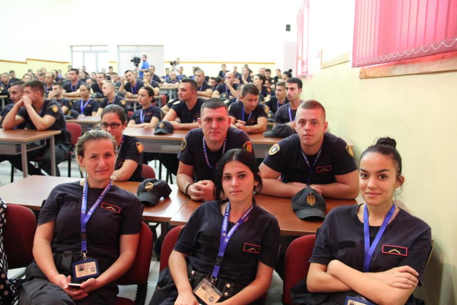 Cadets of the Police Academy, during a screening of dutch film "Cyber Jihad", at the IHRFFA, Tirana, 18 September 2017.