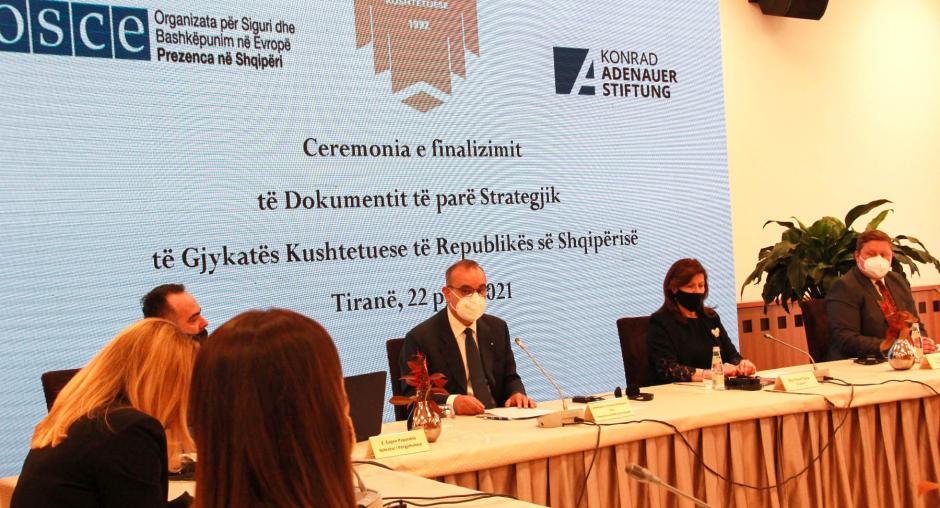 The Constitutional Court of Albania, in co-operation with the OSCE Presence and the Office of the Konrad Adenauer Stiftung (KAS), launched its first Strategy at an event on 22 April 2021.