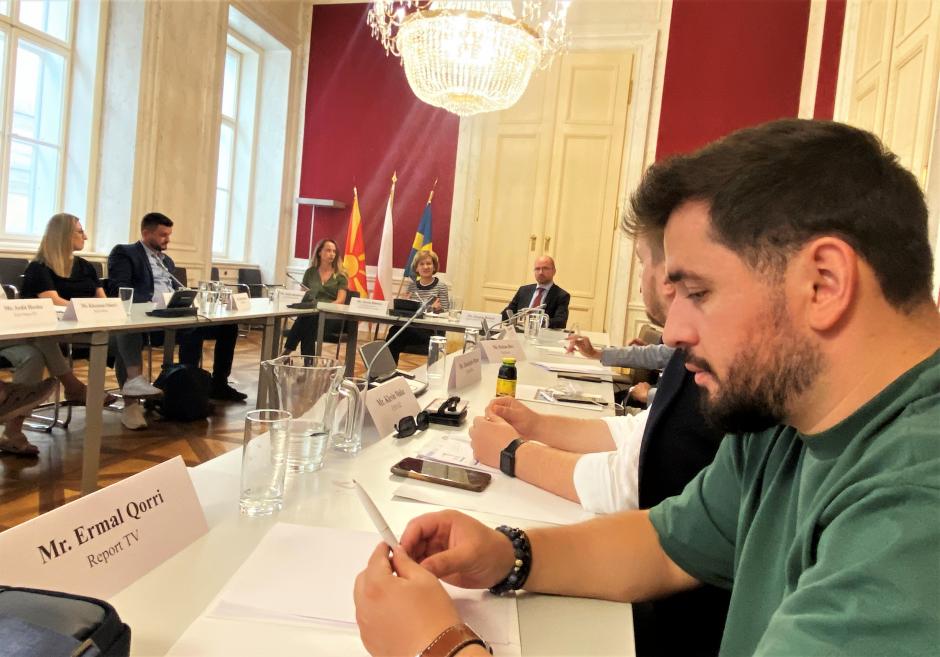 Albanian journalists exchange views with OSCE Representative on Freedom of the Media during their exchange workshop in Vienna.