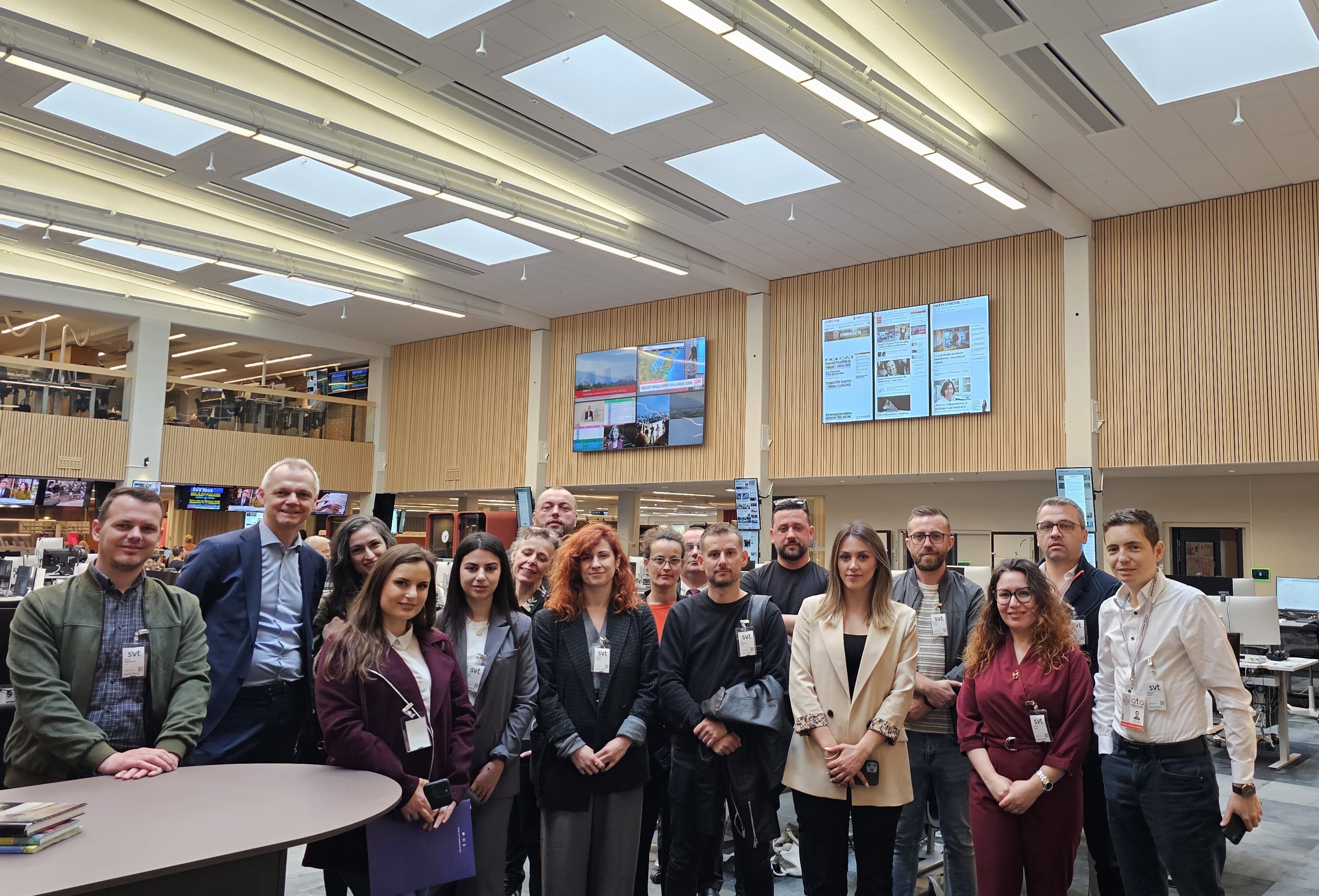 Albanian journalists visit Sveriges Television during their exchange visit to Sweden organized by OSCE Presence in Albania as part of its small arms and light weapons project, Stockholm, 11 April 2024.