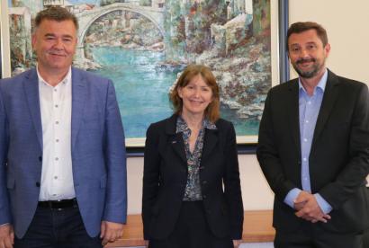 SARAJEVO, 27 April 2021- Kathleen Kavalec, Head of the OSCE Mission to Bosnia and Herzegovina visited Mostar today and met with city officials, the Mayor and City Council Speaker, Chairs of Mostar City Council caucuses and representatives of political parties, to congratulate them on their mandates, to learn about the priorities of the new city administration, and to offer OSCE Mission support in key areas.