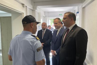 SKOPJE, 14 June 2023 — The OSCE Mission to Skopje unveiled a renovated administrative building for the Police Canine (K9) Unit of North Macedonia today in Hipodrom, a suburb of Skopje. The Mission helped equip the building with modern IT surveillance infrastructure and provided secure access control systems to the weapon storage facility for authorized personnel. These efforts help improve working conditions for police officers, making them better equipped to respond to emerging threats and ensure the efficient deployment of police service dogs.