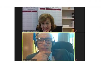 On 4 May, Teresa Ribeiro, OSCE Representative on Freedom of the Media (RFoM), met with Ambassador Jaume Serra Serra to discuss the media freedom situation in the Principality of Andorra and in the broader OSCE region.
