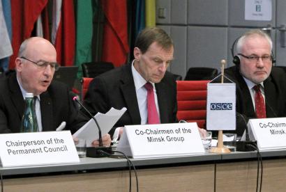 VIENNA, 3 November 2011- The Co-Chairs of the OSCE Minsk Group (Ambassadors Bernard Fassier of France, Robert Bradtke of the United States, and Igor Popov of the Russian Federation) and Ambassador Andrzej Kasprzyk (Personal Representative of the OSCE Chairperson-in-Office) presented their annual report of activities on November 3 to the Permanent Council of the OSCE, in light of the upcoming OSCE Ministerial Council in Vilnius...
