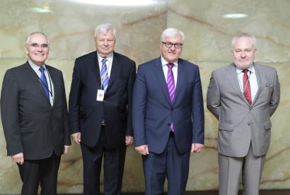 BERLIN, 23 June 2016 – OSCE Chairperson-in Office and German Foreign Minister Frank-Walter Steinmeier met with Co-Chairs of the OSCE Minsk Group, Ambassadors Igor Popov (Russian Federation) and Pierre Andrieu (France), and with Ambassador Andrzej Kasprzyk, the Personal Representative of the Chairperson-in-Office on the conflict dealt with by the OSCE Minsk Conference in Berlin today...