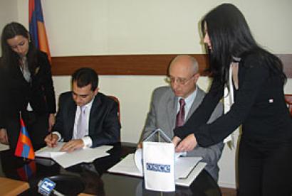 YEREVAN, 4 November 2008- An agreement to start an Anti-Trafficking Support and Resource Unit was signed today by Ambassador Sergey Kapinos, Head of the OSCE Office in Yerevan, and Arsen Hambardzumyan, the Armenian Minister of Labour and Social Issues...
