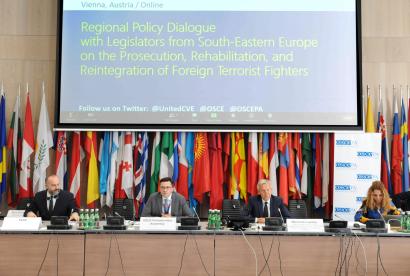 Legislators and experts discussed strategies and policies for effective and human rights-compliant prosecution, rehabilitation, and reintegration of foreign terrorist fighters and their families in South-Eastern Europe and neighboring countries at a Regional Policy Dialogue held in blended format on 14 and 15 October 2021 in Vienna.