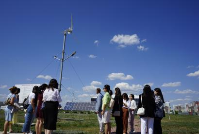 A high-level meeting and field visit aimed to foster young women’s participation in the renewable energy sector took place in Nur-Sultan on 14 July 2022. The Office of the Co-ordinator of OSCE Economic and Environmental Activities organized the event together with the Kazakh German University.