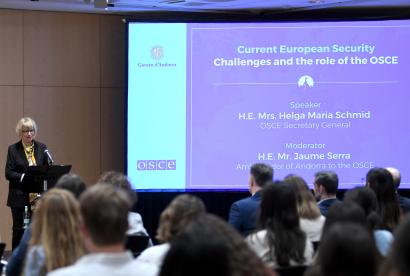ANDORRA LA VELLA, 28 July 2022- OSCE Secretary Genera Helga Maria Schmid visited Andorra on 27 July to engage in policy discussions with Andorran youth representatives and attend the closing event of the “OSCE Debating Perspectives 20-30 Roadshow.” During a lecture at the Roadshow, the Secretary General focused on the OSCE’s vital role to promote comprehensive security including the respect of human rights and fundamental freedoms. She highlighted the crucial role of youth in promoting democracy, and called for increased efforts to empower women and enable their equal participation, including in peace processes.