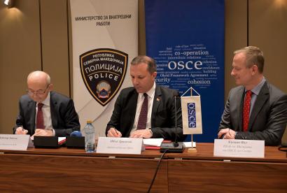 SKOPJE, 30 March 2023 — The OSCE Mission to Skopje facilitated the signing of a Protocol between the Public Prosecutors Office and the Ministry of Internal Affairs. The Protocol on co-operation was prepared with the support of the OSCE Mission to Skopje and will help enhance co-operation between the police and prosecution toward a more effective and efficient criminal justice system.
