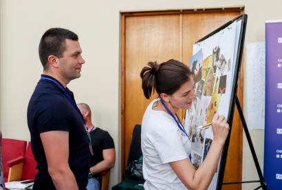 The first two groups of operators and dispatchers of Ukraine’s National Police emergency “102” hotline have strengthened their knowledge and skills in effective communication with children during a series of two-day trainings organized by the OSCE Support Programme for Ukraine in Uzhhorod from 6 to 9 June 2023.