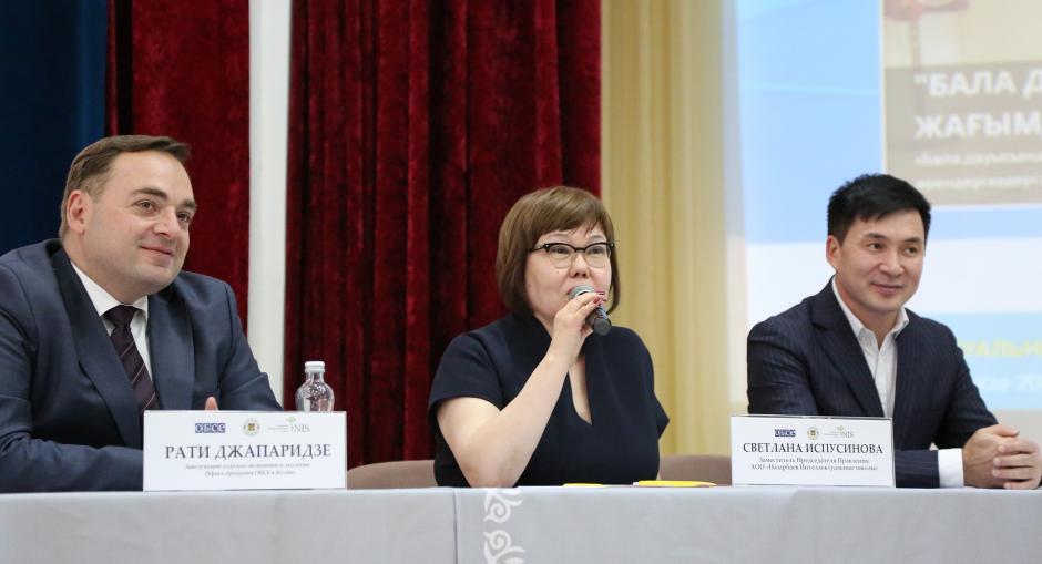 Svetlana Ispusinova (c), the Deputy Chairman of an autonomous educational organization “Nazarbayev Intellectual schools”, speaks to secondary school teachers on importance of the environmental education in Kazakhstan, Astana, 5 May 2017.